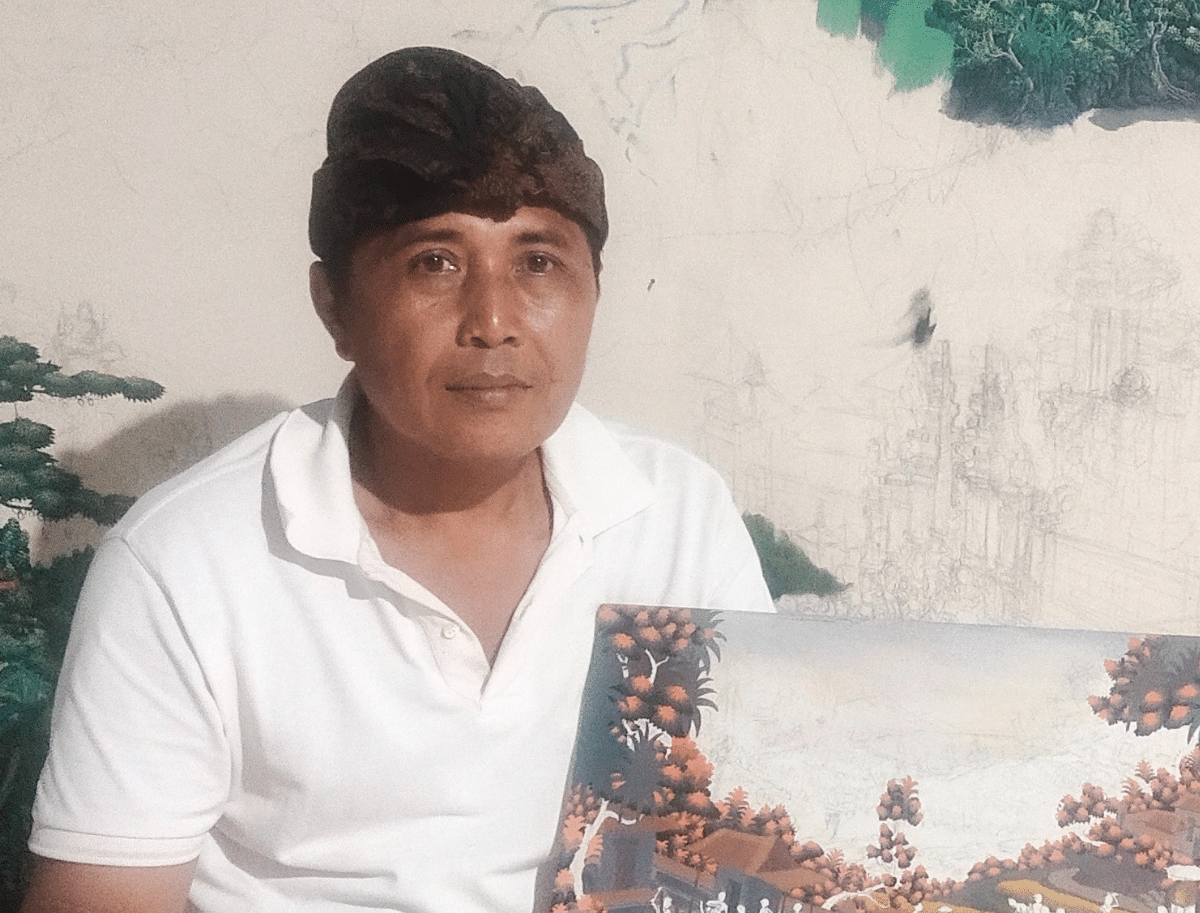 Born in 1973, I Made Bugur is a prominent figure within the Pelangi Art community in Ubud, Bali. His passion for painting began early in life, nurtured by his surroundings and mentorship from local artists. While traditional Balinese art often depicted rice fields, Bugur’s style diverges, focusing on Balinese traditions and myths with meticulous attention to detail. His journey from homemade canvas to professional exhibitions reflects not just personal growth but also a commitment to elevating fellow artists. Through the Pelangi Art community, Bugur aims to blend tradition with contemporary perspectives, fostering a vibrant artistic scene in Bali and beyond.